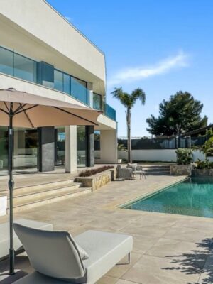 Finca exclusiva en Calvià con ocho dormitorios, piscina, casa de invitados, terrazas y vistas panorámicas a la montaña en Es Capdella.