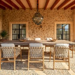 Esta hermosa finca se encuentra en Llucmajor, una zona tranquila con la naturaleza. La entrada está diseñada por hermosa piedra. La finca tiene una gran piscina con jardín privado y espacio para los coches.