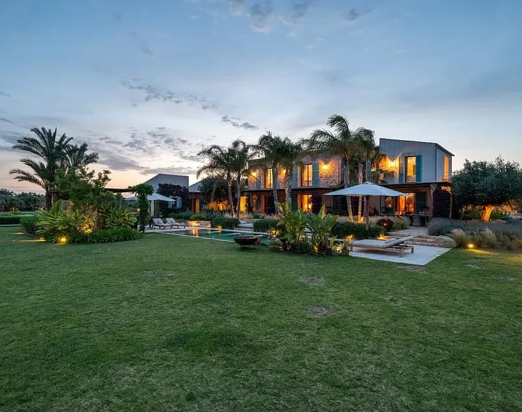 Finca de lujo en Llucmajor con campo de golf privado, casa de invitados, piscina infinita climatizada, características sostenibles y vistas panorámicas al campo.