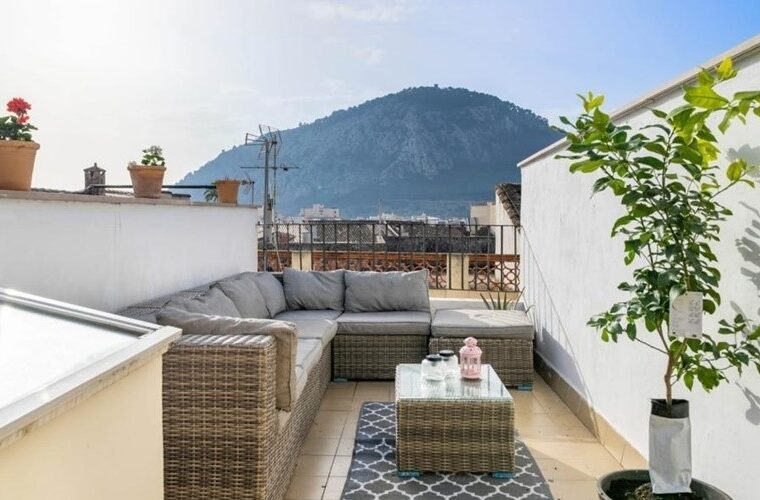 Casa adosada en Pollensa con tres dormitorios, terraza privada, elementos tradicionales y licencia de alquiler vacacional.