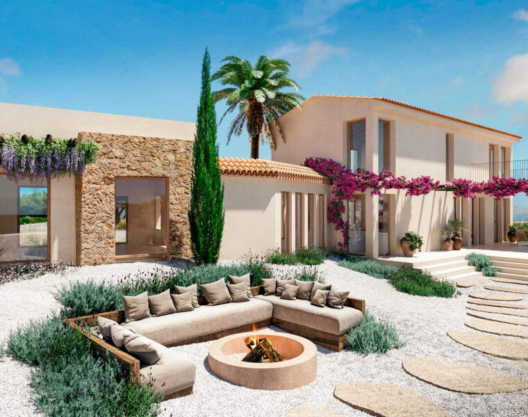 Elegante villa moderna en Sa Font Seca, con cuatro dormitorios en suite, jardín paisajístico, piscina, bodega y acabados naturales de alta calidad — un refugio de paz cerca de Palma para quienes valoran la belleza y la serenidad.