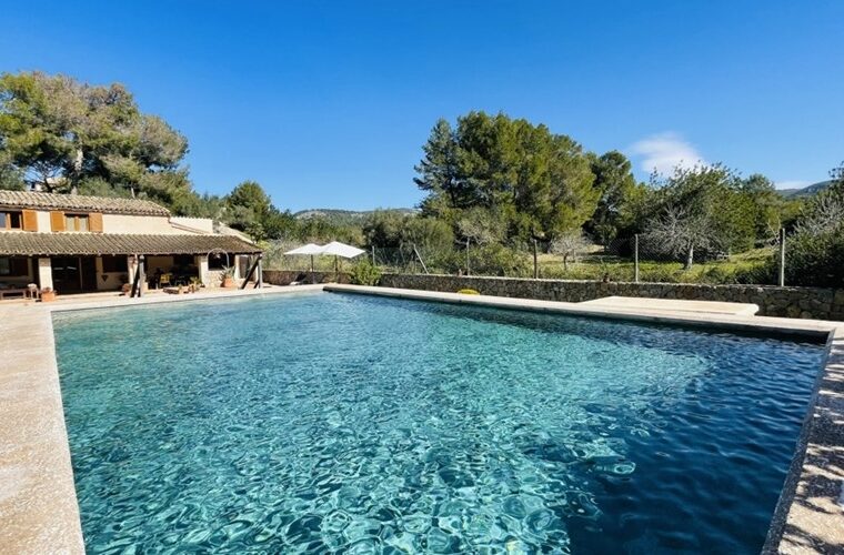 Elegante casa de campo en Pollença con seis dormitorios, piscina privada, amplio jardín y licencia vacacional — una perfecta fusión de encanto mediterráneo y confort moderno.