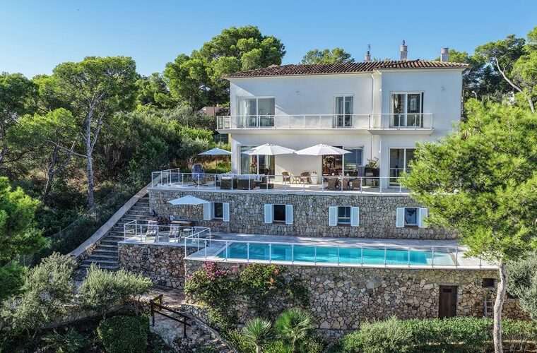 Villa de diseño en Portopetro con excepcionales vistas al mar, piscina privada y un entorno idílico y tranquilo.