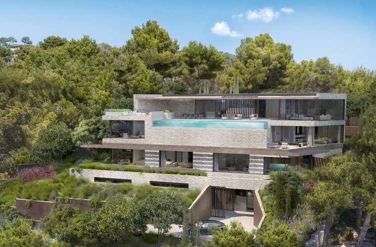 Villa de nueva construcción en Old Bendinat, Calvià, con vistas panorámicas al mar, piscina infinita, suite de invitados y solárium, en una de las zonas más exclusivas de Mallorca.