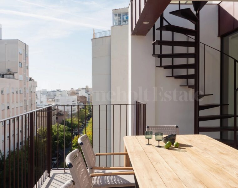Ático en Santa Catalina con amplias terrazas, dos dormitorios, comodidades modernas y una impresionante azotea privada.