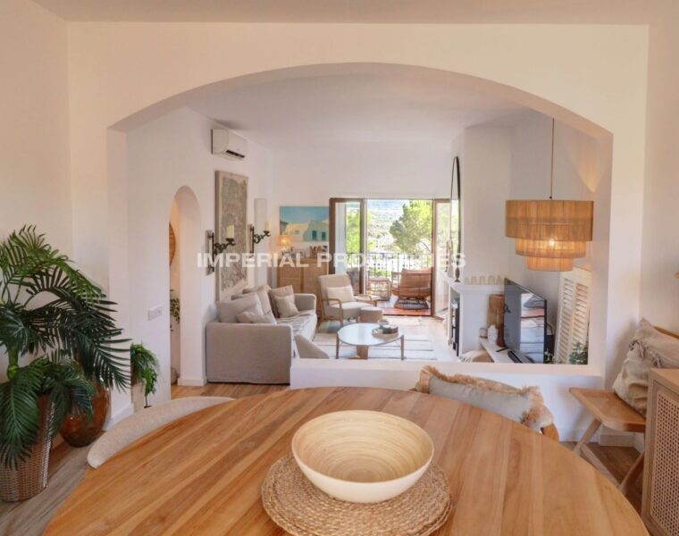 En Santa Ponsa, apartamento recién reformado con dos dormitorios, dos balcones, vistas a la montaña y acceso a dos piscinas comunitarias.