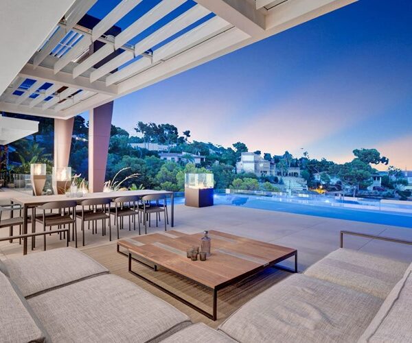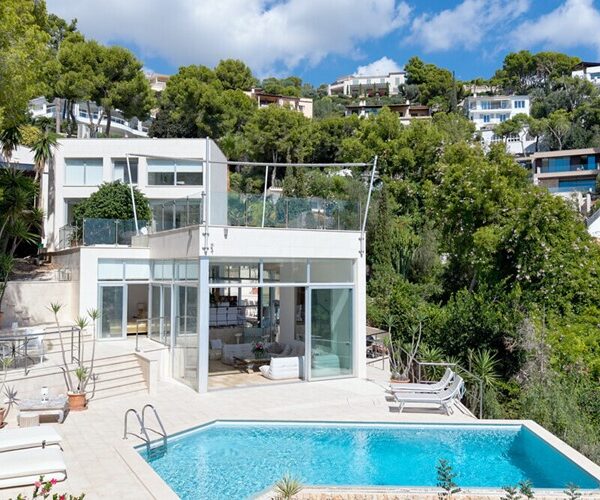Villas mediterráneas más grandes y casas familiares con jardín, piscina y vistas al mar se encuentran detrás del puerto, en la zona más amplia de Portals Nous. En Costa d’en Blanes se pueden encontrar casas contemporáneas de diseño de nueva construcción con la última tecnología que se adaptan bien al paisaje circundante de esta ubicación de vanguardia junto al mar.