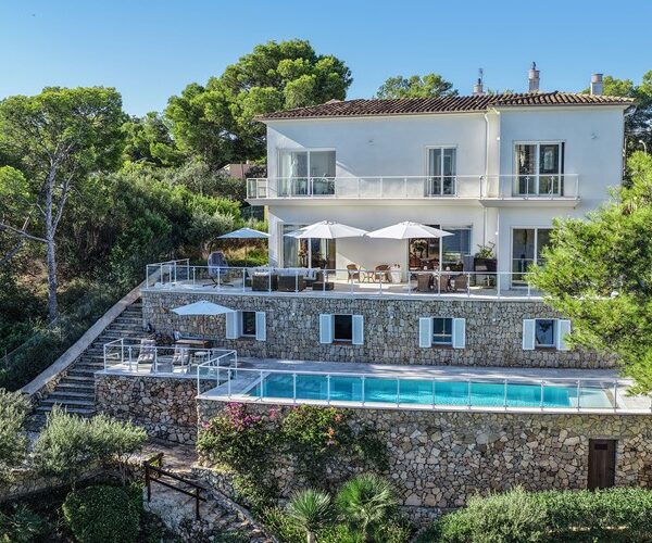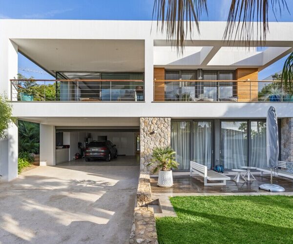 Villa en primera línea en Palmanova con cinco dormitorios, piscina privada, apartamento de invitados, jardín ajardinado y acceso directo al mar.