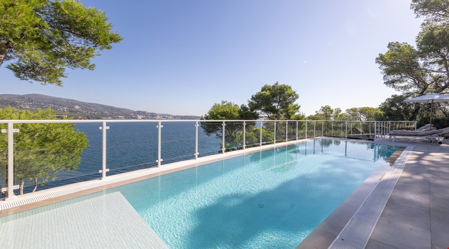 La parcela de 1.464 m² está concebida para disfrutar al aire libre. Un jardín ajardinado rodea la amplia piscina, mientras que las generosas terrazas ofrecen zonas sombreadas ideales para comer y descansar. Desde el propio jardín, un acceso privado conduce a una plataforma natural de baño, un privilegio excepcional que permite disfrutar del mar en cualquier momento del día.